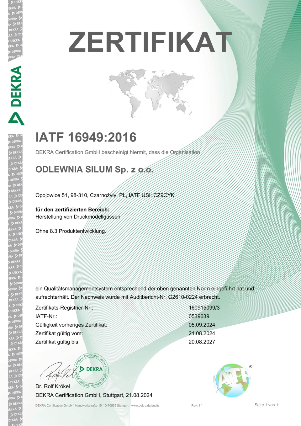 Certyfikat IATF - Odlewnia SILUM